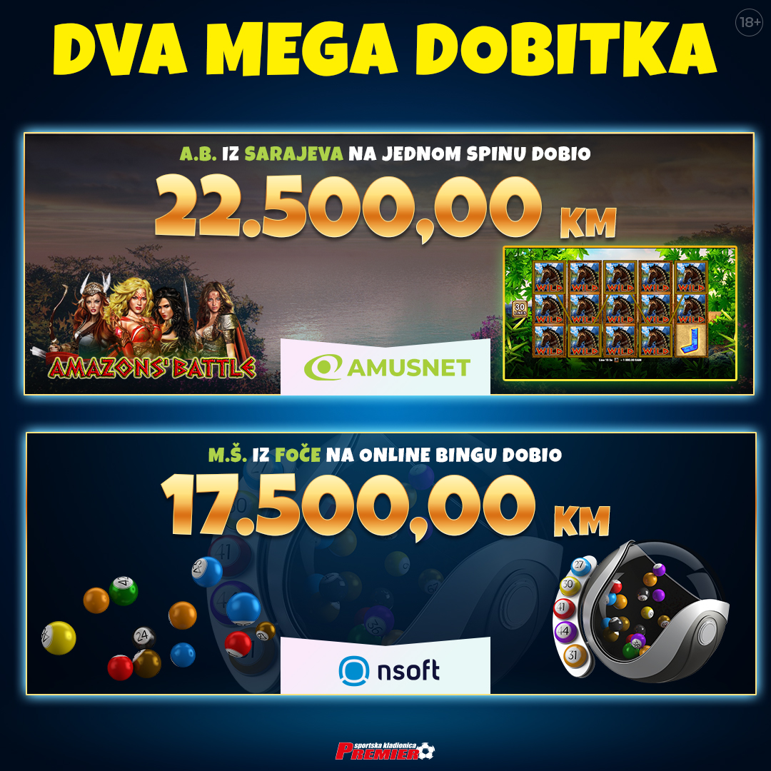 Početak tjedna nam donosi dva fantastična dobitka na online casino igrama Premier kladionice!