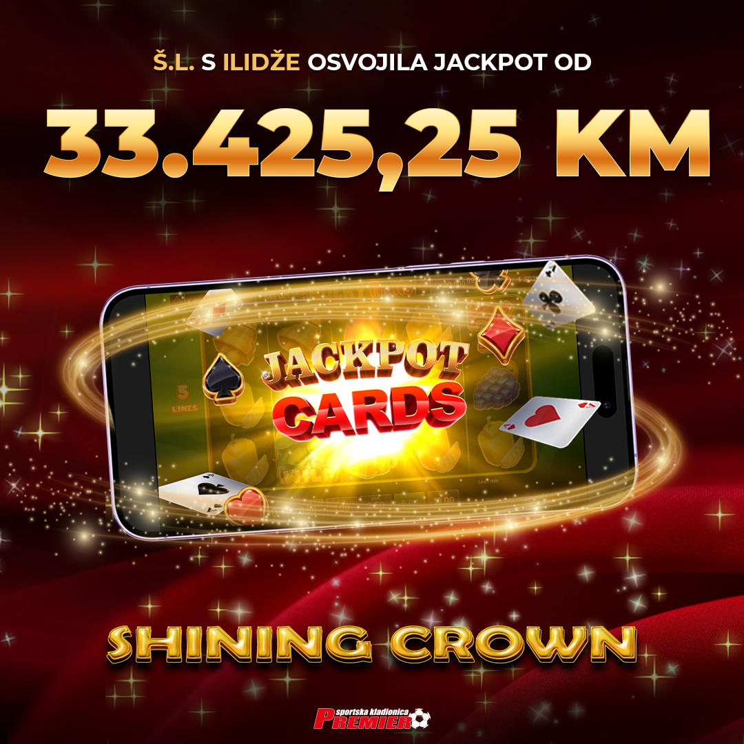 Čestitamo igračici Š.L. koja je u igri Shining Crown na ulogu od 1 KM po spinu osvojila Jackpot Cards bonus, pronašla tri karte sa znakom srca i osvojila fantastičnih 33.425,25 KM!